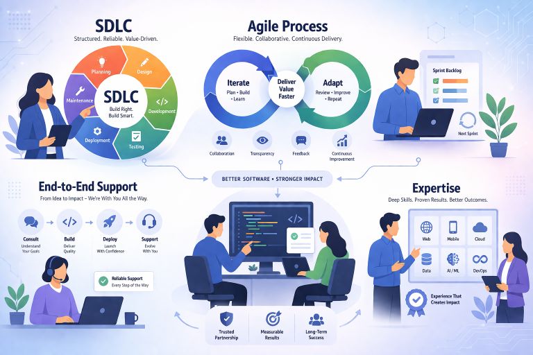 We don't just build software; we build solutions that drive real business outcomes. Our approach combines deep technical expertise with strategic business insight.